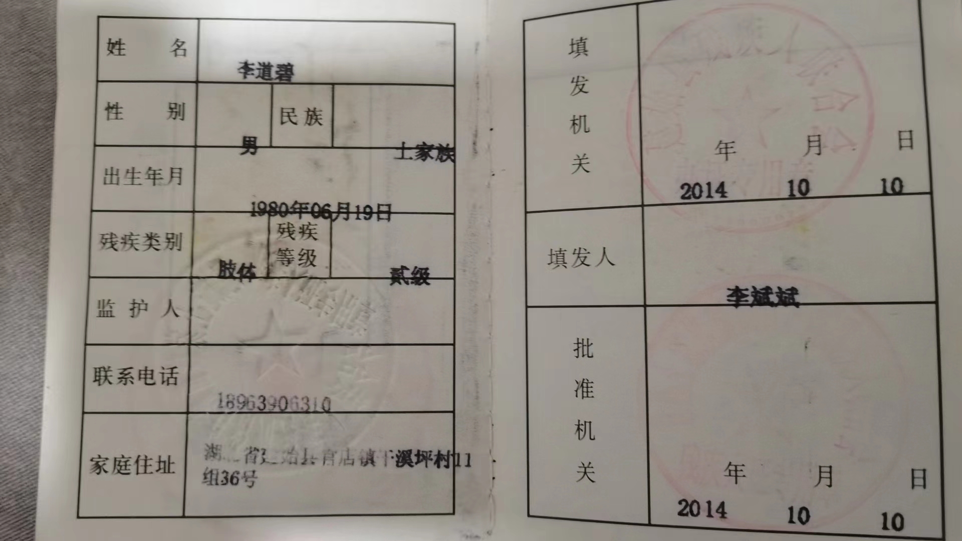 2023年3月,给李道碧捐助50吨水泥帮其修建住房